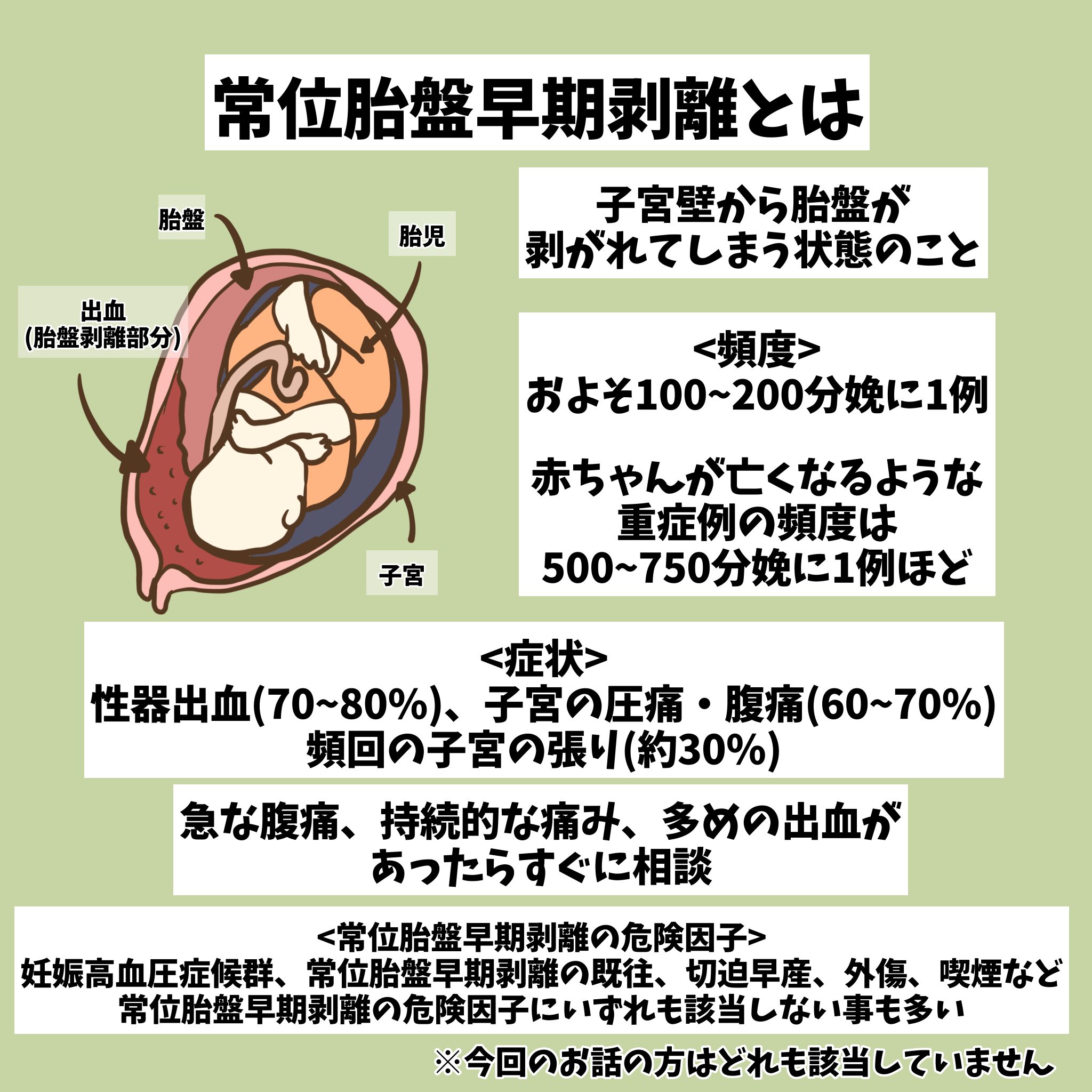 常位胎盤早期剥離については私が調べて簡単にまとめたものなので、より詳しく知りたい方は是非検索して理解を深めていただけたらと思います。